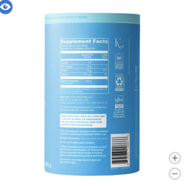Vital Proteins Collagen Peptides là thực phẩm chức năng bổ sung Collagen dạng bột của hãng Vital Proteins Mỹ. Sản phẩm chứa hàm lượng Collagen được lấy từ loài bò nuôi bằng cỏ trong môi trường tự nhiên giúp hỗ trợ làm đẹp da, làm chậm các dấu hiệu tuổi tác trên da, cho làn da tươi trẻ, mịn màng và sáng khỏe hơn.